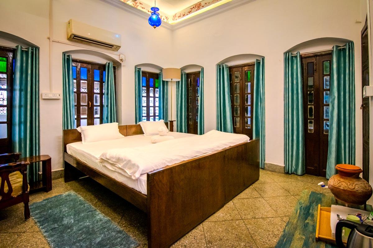 This airy room on the first floor opens directly onto the haveli courtyard. With a king-size bed, attached bathroom, and heritage charm, it’s ideal for guests seeking a peaceful atmosphere in the heart of the old city.