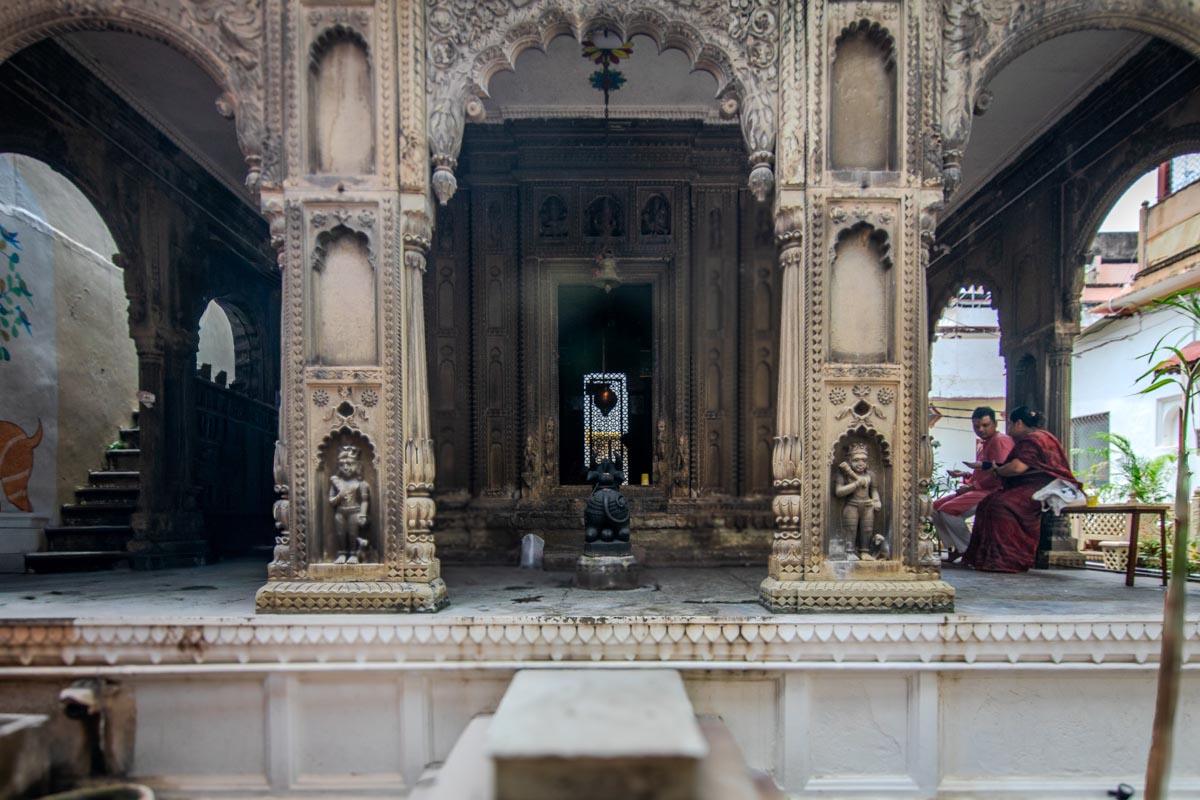 - Walk about 20 metres, and you will find Rudreshwar Mahadeo Kothi on the left (it’s the first house on the left in the lane – one shop after Vishwanath Kothi Restaurant).